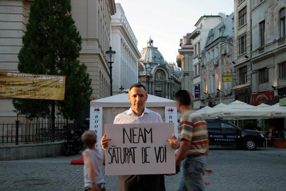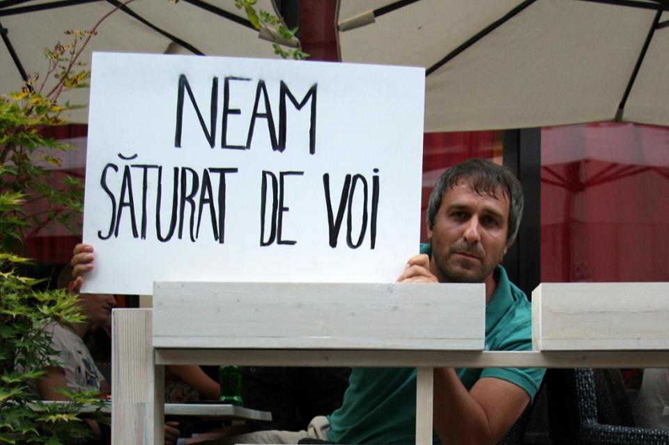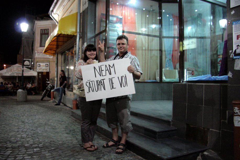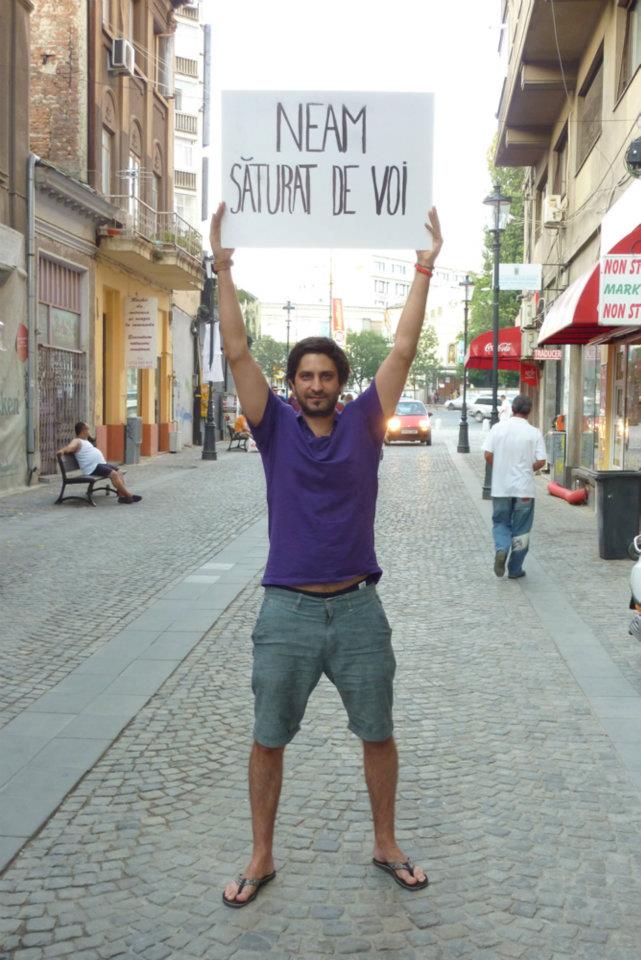 M-am fotografiat si eu cu pancarta “NEAM SATURAT DE VOI”. Miercuri 19 iulie, la exact doua saptamini de la lansarea proiectului.