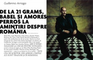 Brad Pitt, Cate Blanchet, Sean Penn, Naomi Watts, Benicio del Toro, Gael Garcia Bernal îi datorează o parte din strălucirea lor de pe ecran. Dacă ei au fost remarcaţi de criticii din lumea întreagă e şi pentru că Guillermo Arriaga a scris poveştile care s-au numit 21 Grams, Babel sau Amores Perros. Are o nominalizare … Continue reading Guillermo Arriaga- De la 21 Grams, Babel şi Amores Perros la amintiri despre România