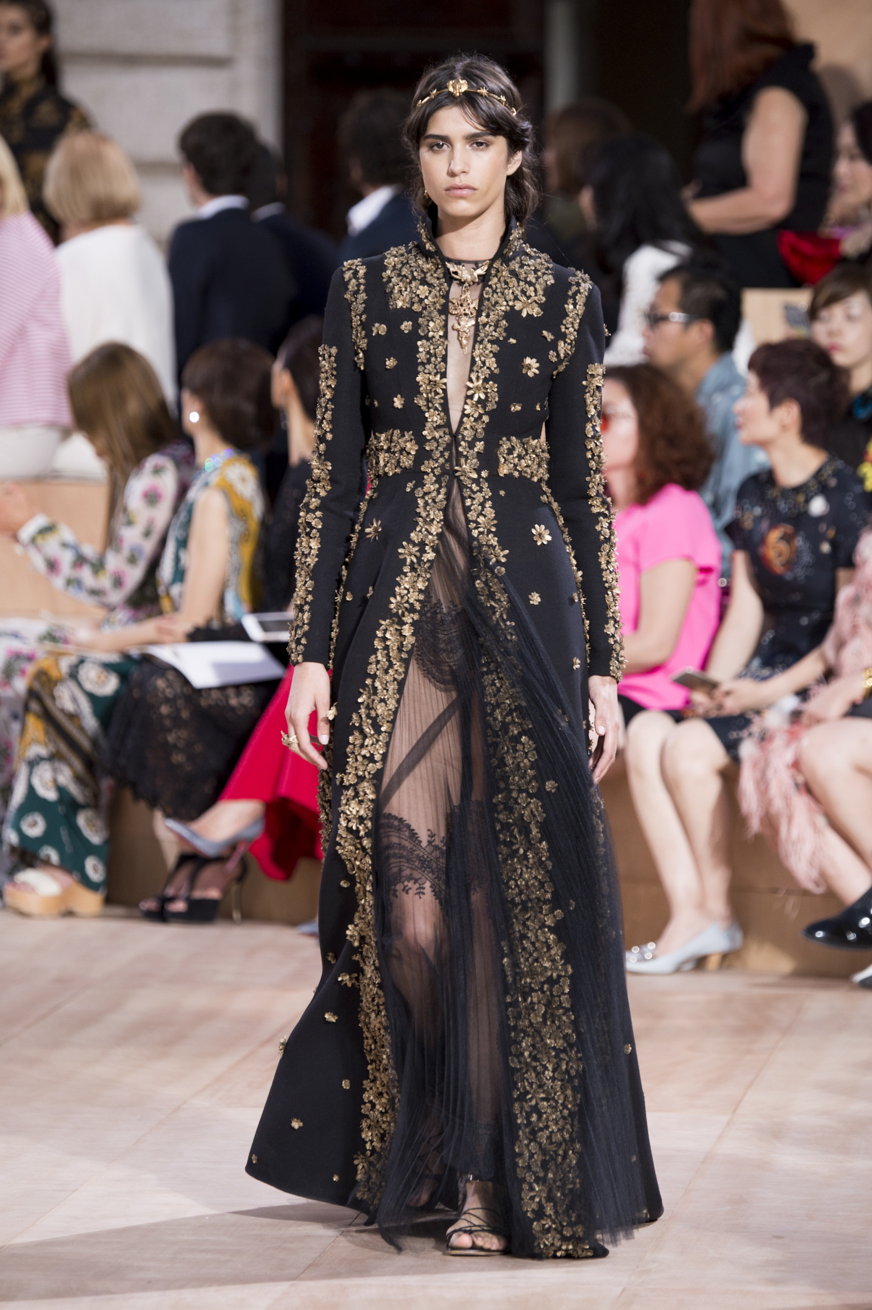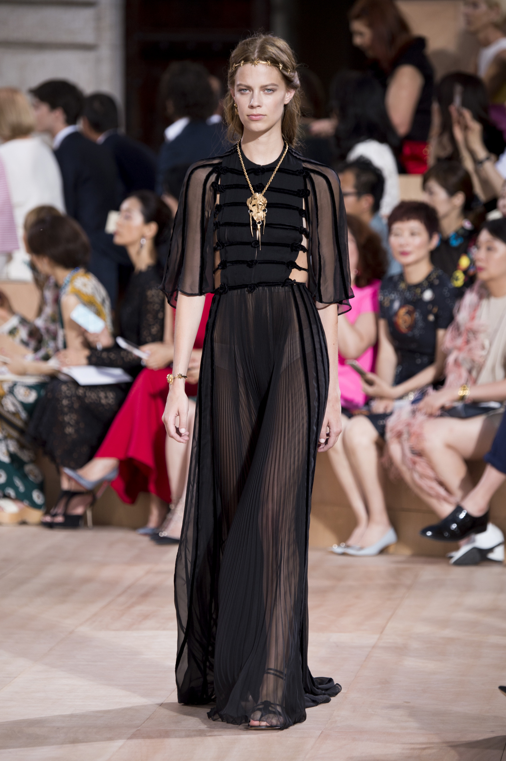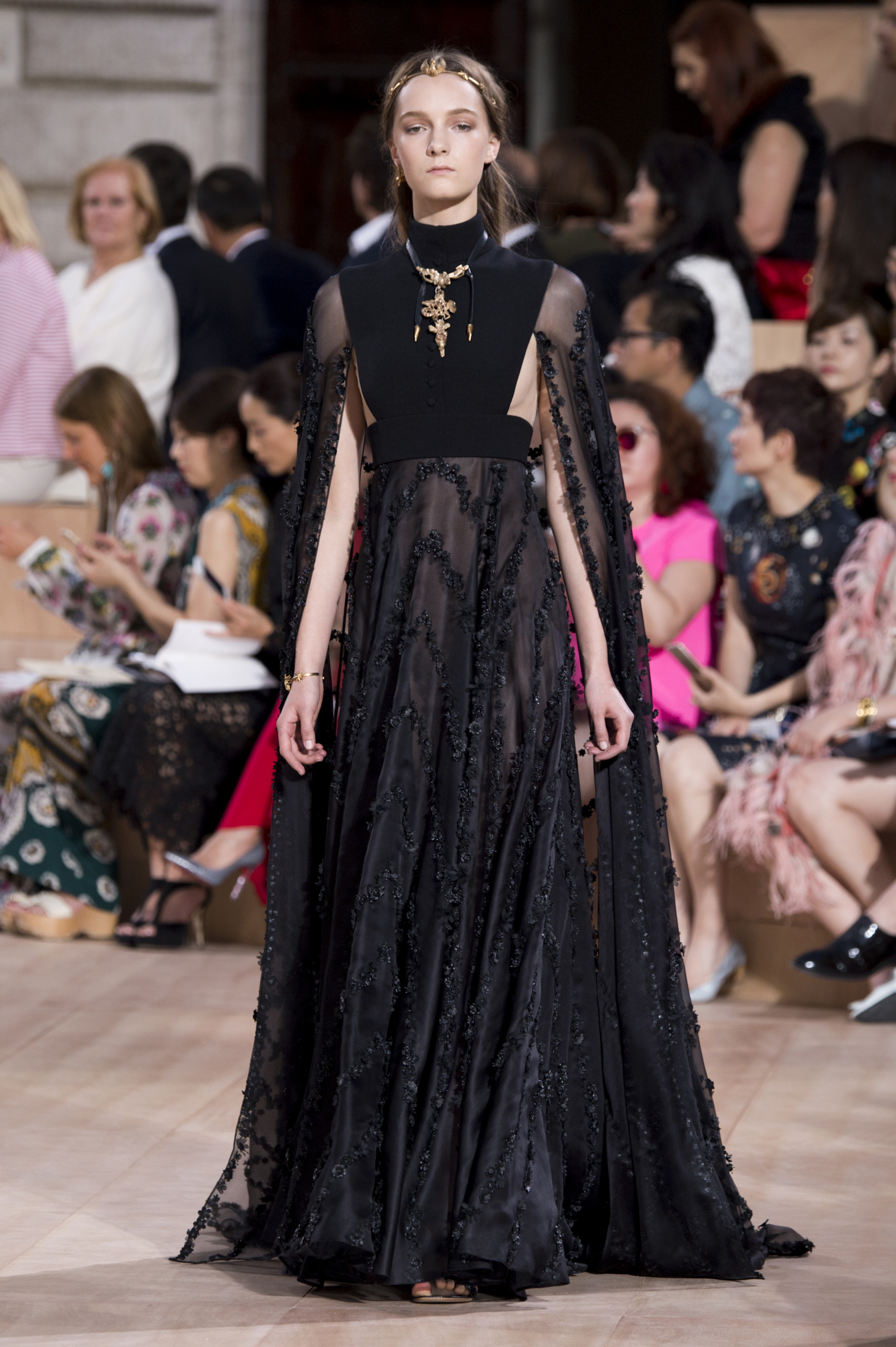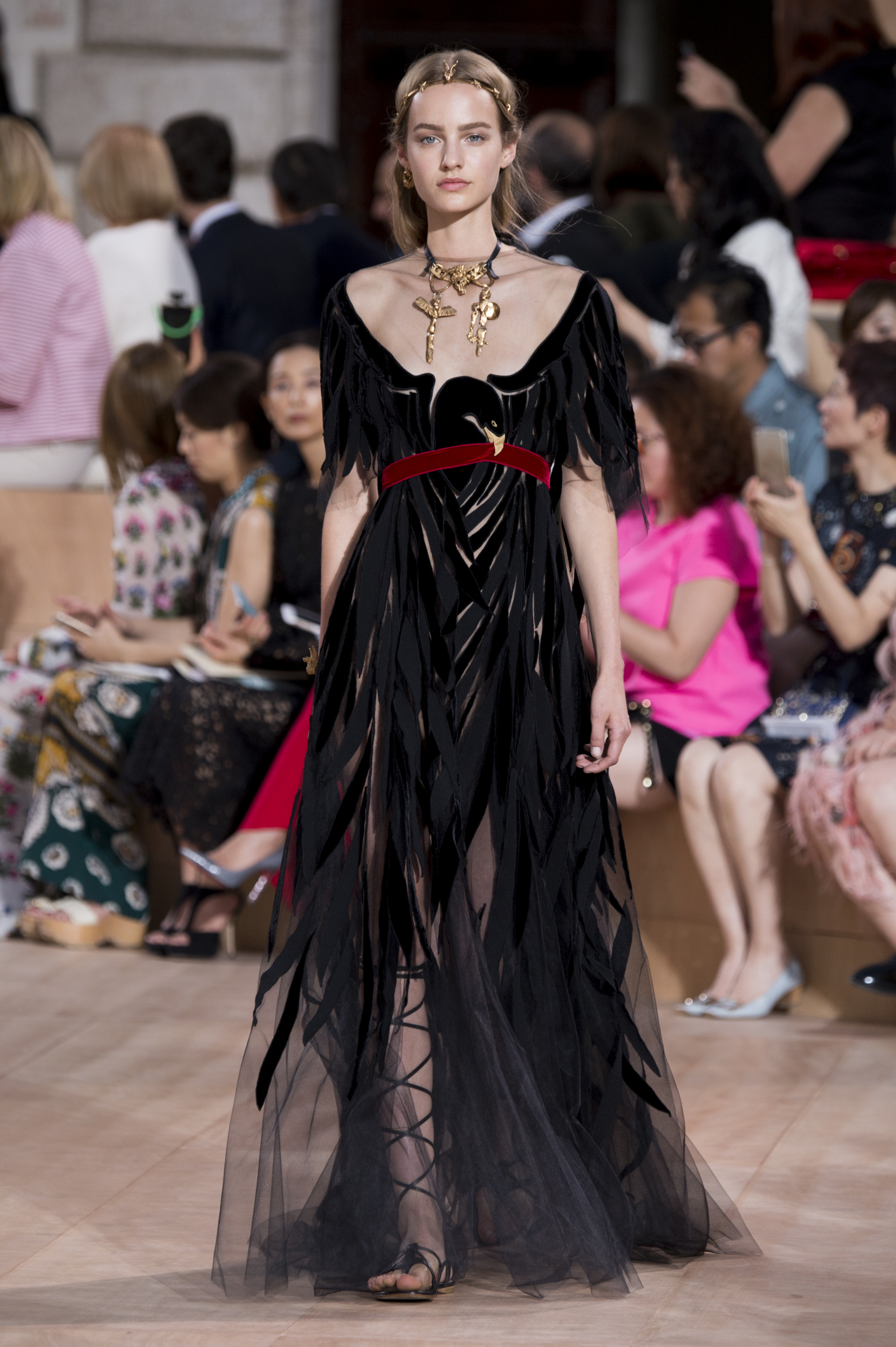 Prezentarea colecției a început cu rochii de culoare neagră și a continuat cu roșu, culoarea semnificativă a casei de modă. Se simte și o influență a serialului foarte popular, Game of Thrones, prin capele și rochiile pe un umăr purtate de modele cu părul lung și împletit sau prin accesoriile aurii.