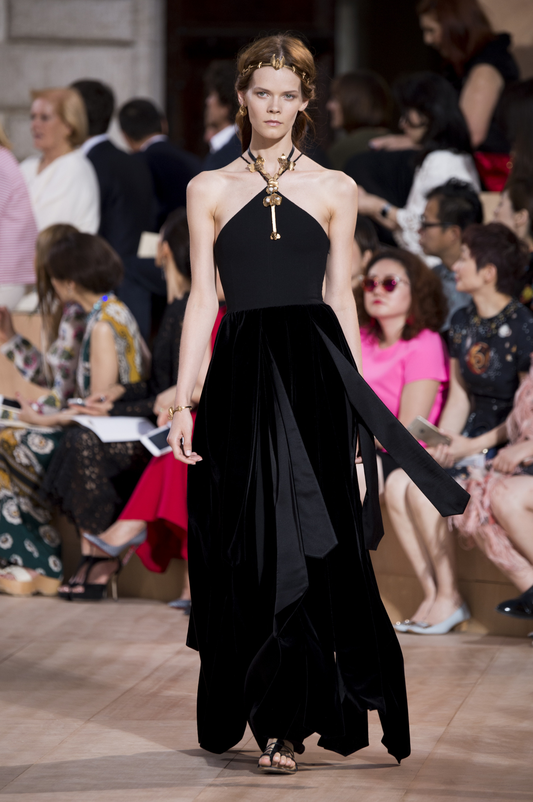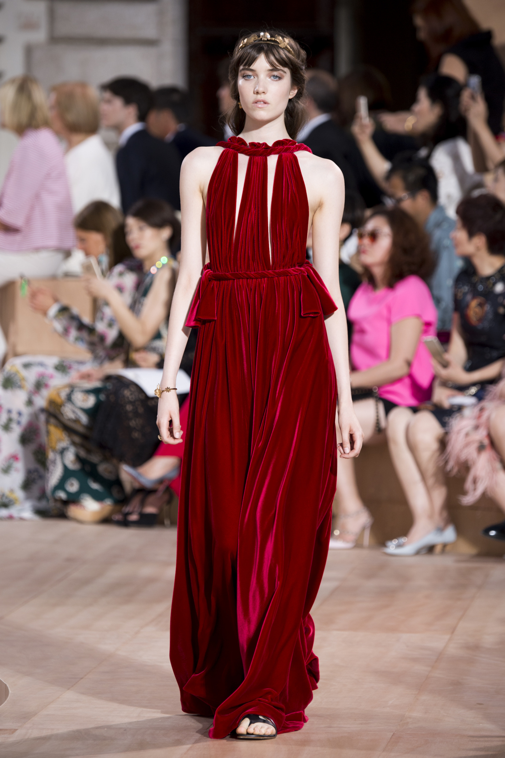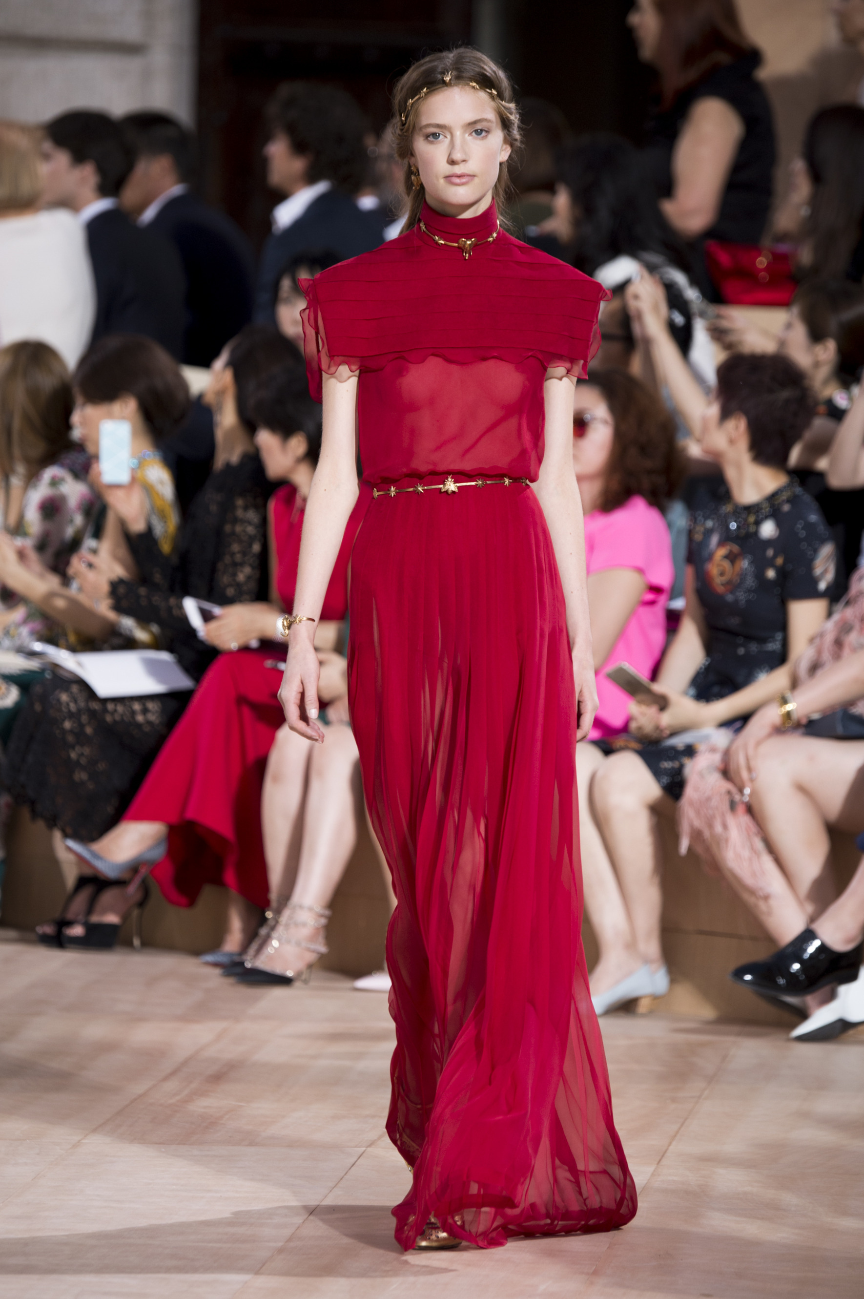 Prezentarea colecției a început cu rochii de culoare neagră și a continuat cu roșu, culoarea semnificativă a casei de modă. Se simte și o influență a serialului foarte popular, Game of Thrones, prin capele și rochiile pe un umăr purtate de modele cu părul lung și împletit sau prin accesoriile aurii.