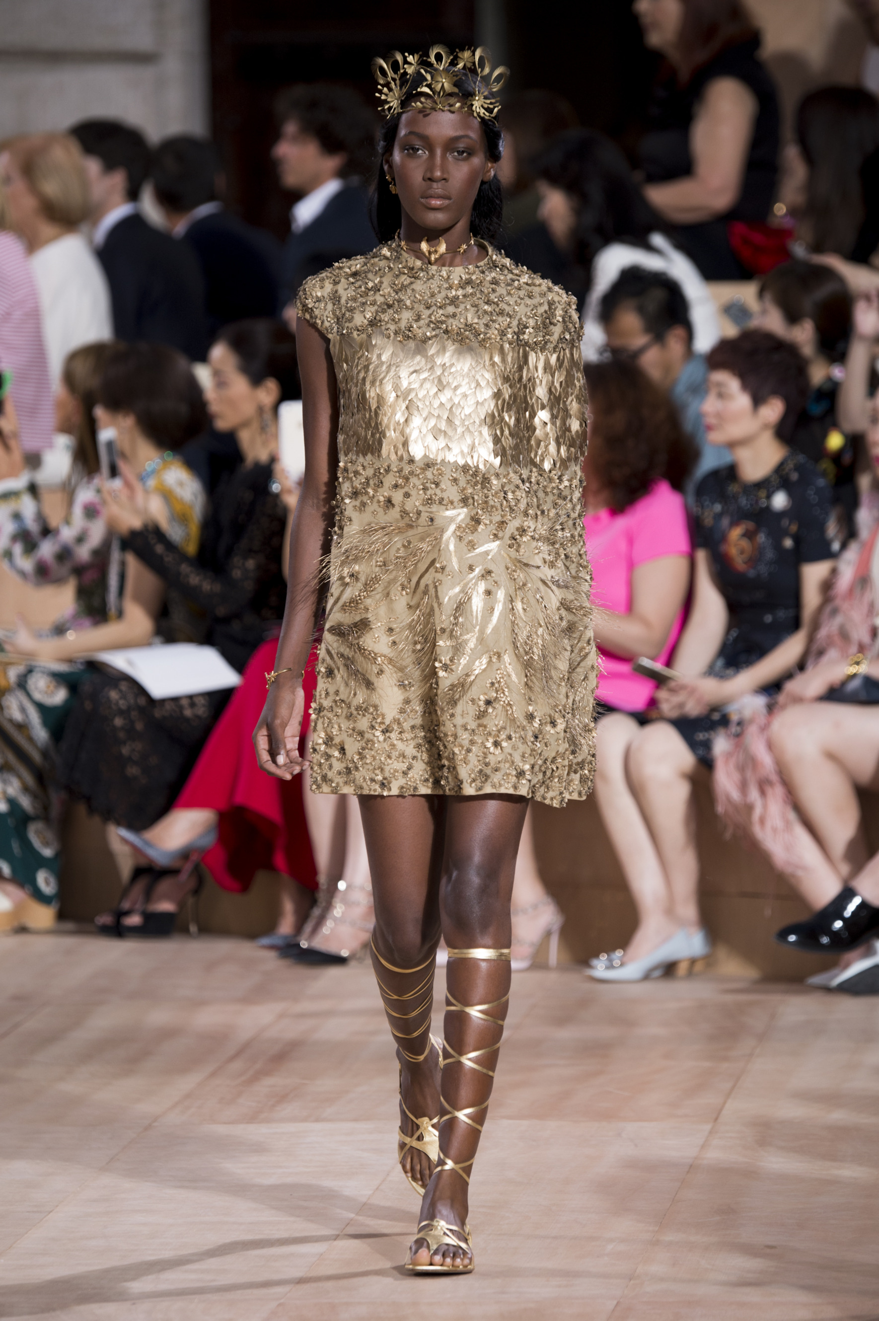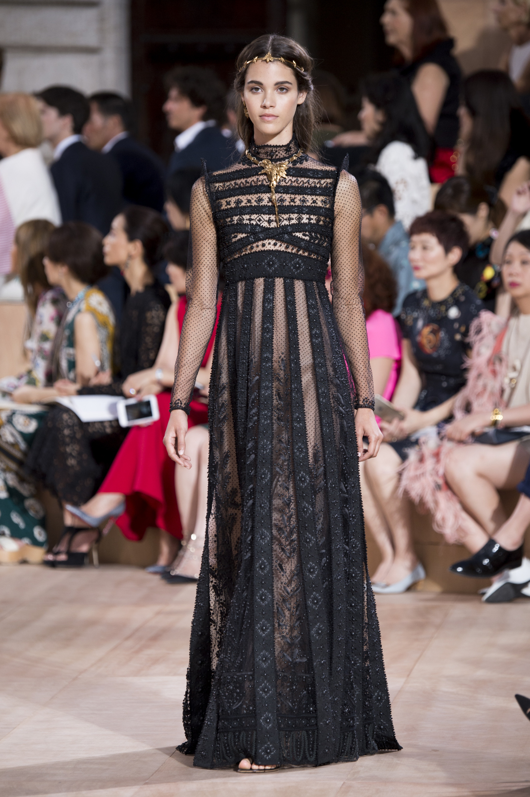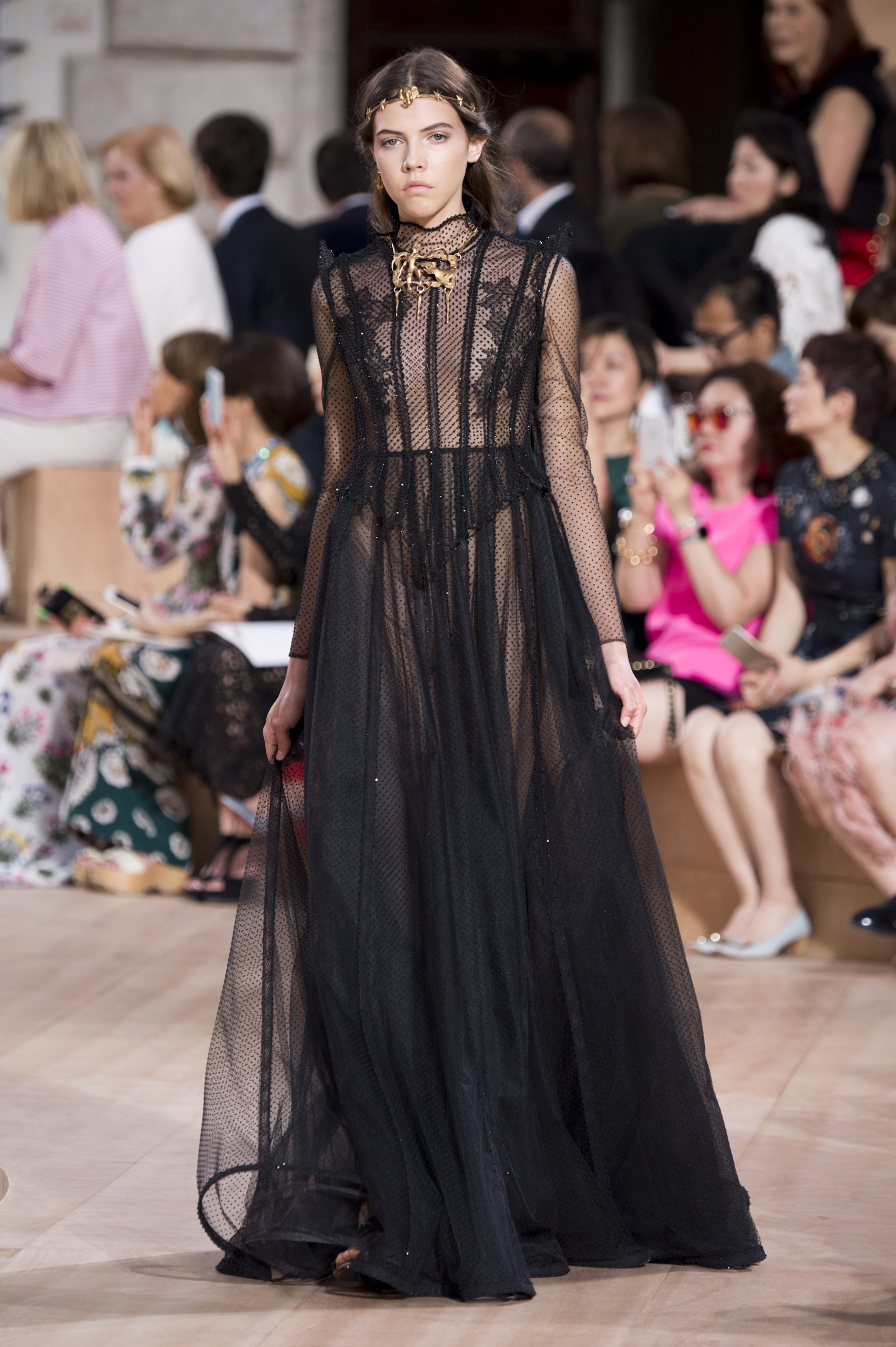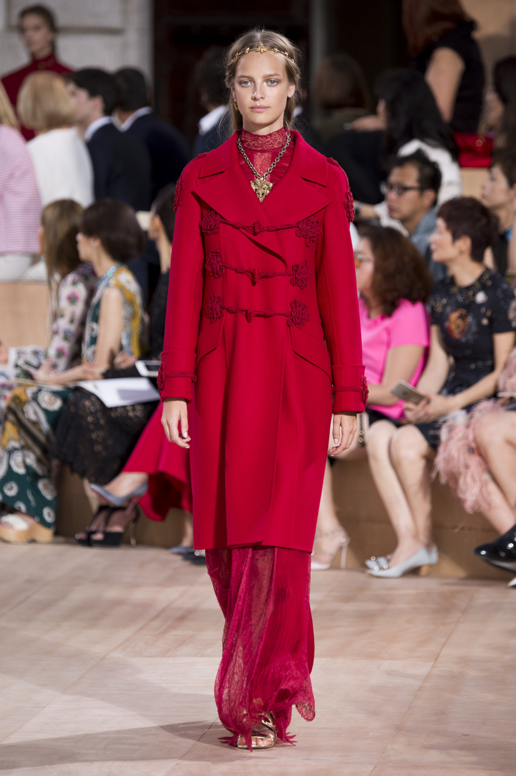 Prezentarea colecției a început cu rochii de culoare neagră și a continuat cu roșu, culoarea semnificativă a casei de modă. Se simte și o influență a serialului foarte popular, Game of Thrones, prin capele și rochiile pe un umăr purtate de modele cu părul lung și împletit sau prin accesoriile aurii.