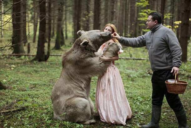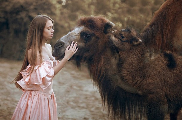 Modelele au șerpi în păr, mângâie girafe și ating un urs foarte mare. Pare ireal, dar cu ajutorul unor dresori profesioniști, s-a creat imediat o legătură între om și animal. Aceste fotografii minunate respectă și o cromatică deosebită, care te convinge că există o lume în care animalele sălbatice sunt prietenoase și se joacă cu oricine se apropie.