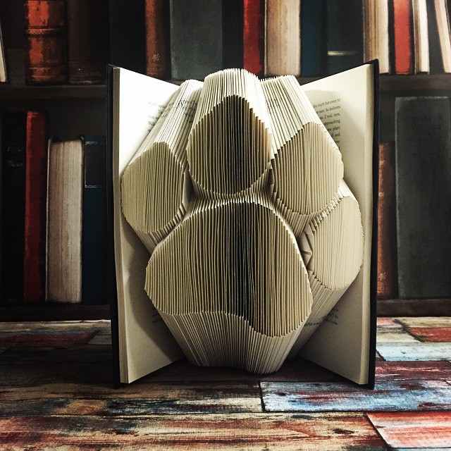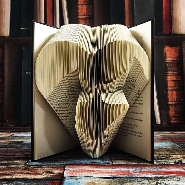 Poți să ai parte și de… artă! O artistă din Anglia, pe nume Nicola Nobo, preia acest proverb mot à mot și transformă cărți vechi în sculpturi complexe doar prin împăturirea meticuloasă a paginilor. Nicola se ocupă de fiecare pagină în parte, iar sutele de foi creează între coperțile groase un design tridimensional.