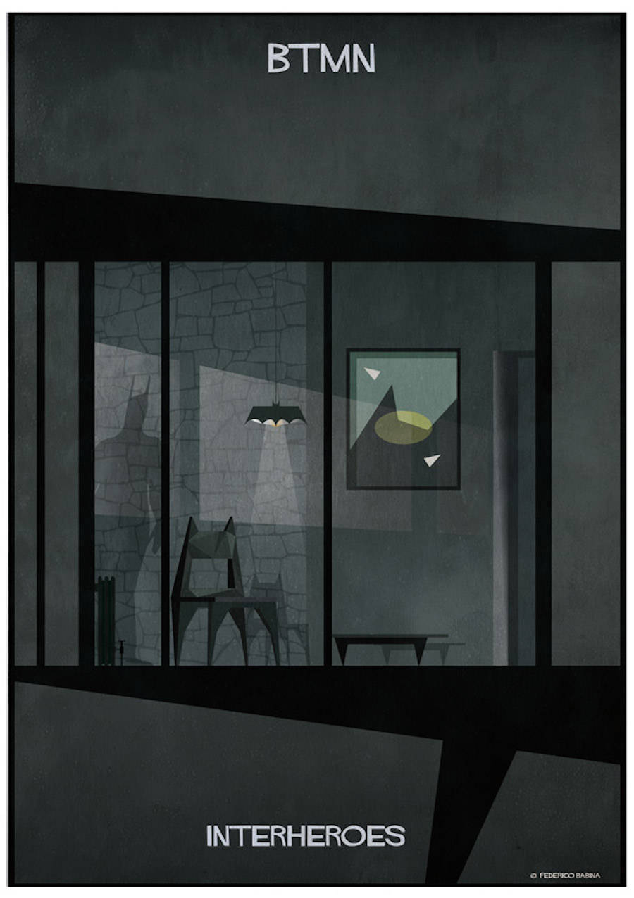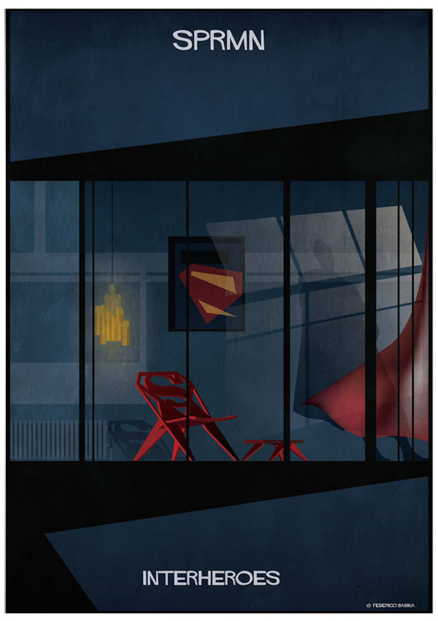 Arhitectul și ilustratorul italian Federico Babica obișnuia să-și imagineze în copilărie cum arătau casele personajelor de benzi desenate pe care le îndrăgea. Pe principiul „Ok, sunt supereroi și salvează lumea, dar ei unde dorm? Cum arată camera lor?”, el a realizat seria intitulată Interheroes.