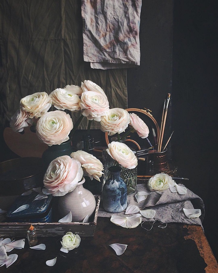Am descoperit un cont de Instagram @mimi_brune, fascinant prin aranjamentele pe care Alya Galinovskaya (ah, fotografii ruși și talentul lor!) le face cu flori sau mâncare. Ca un Cezanne al zilelor noastre, fotografiile ei îmi amintesc de picturile cu natură statică.