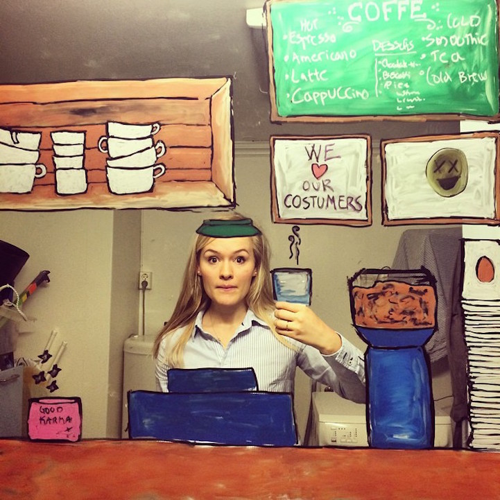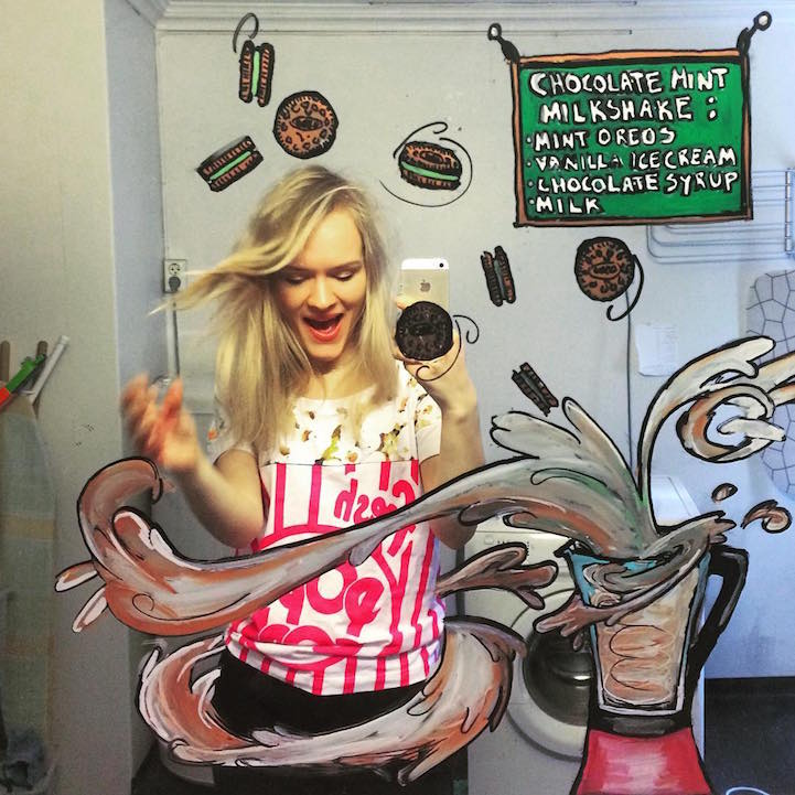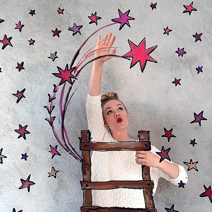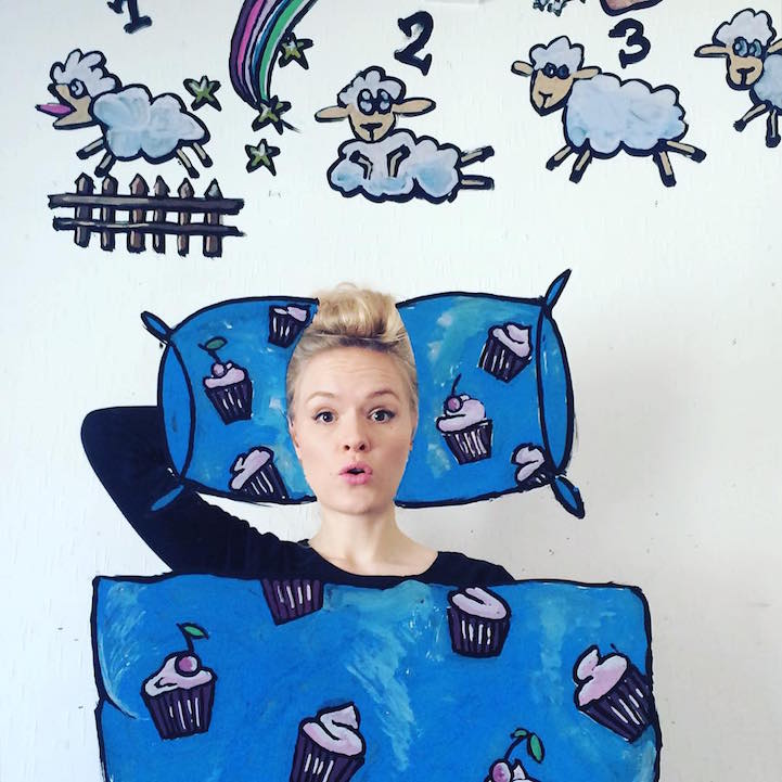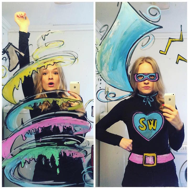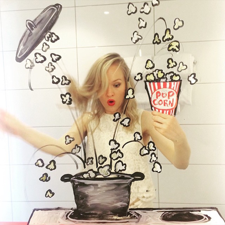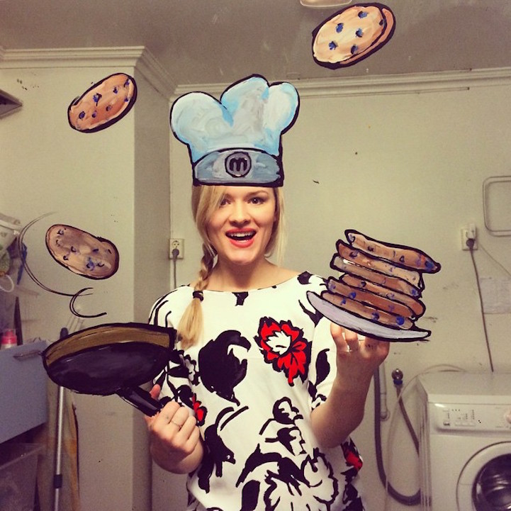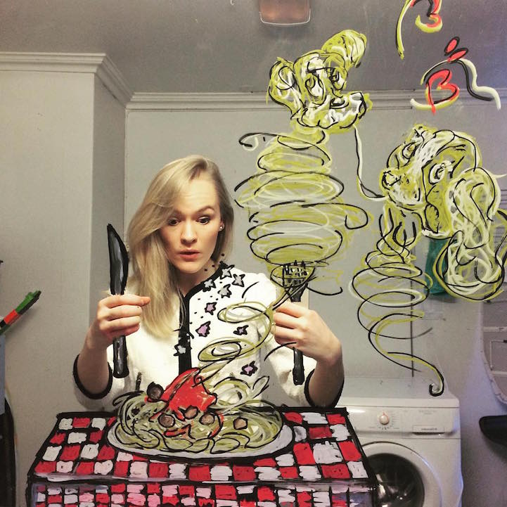 Helene este o artistă din Norvegia care nu are nevoie de prea multe lucruri pentru a face un soi de artă a generației millenials. Folosește un iphone pentru a se poza în oglindă și markere colorate pentru a crea o poveste pentru fiecare selfie în parte.